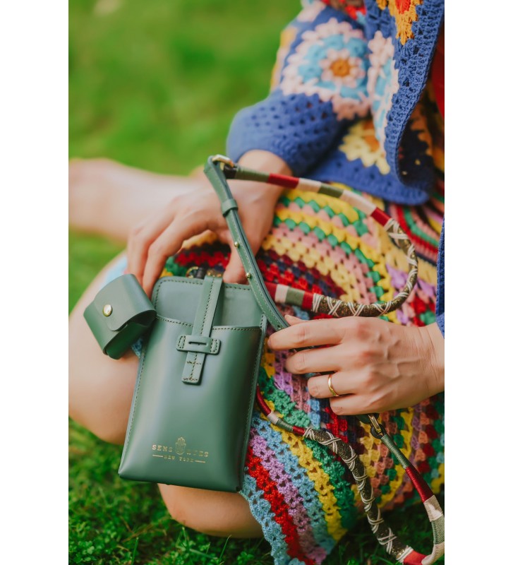 Leather Phonecase Bags are a signature re-design of the classic Semseyes bag, SBAG is a genuine leather crossbody iPhone wallet detailed in gold-tone accents. Crafted with a removable, adjustable handmade strap and side snap pocket, her sleek minimalist design provides a discrete way to carry your phone, cash and cards while on the go.